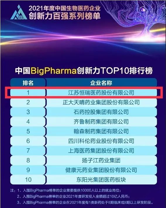 蝉联榜首!BJL平台医药再次登顶“中国BigPharma企业创新力TOP10排行榜”