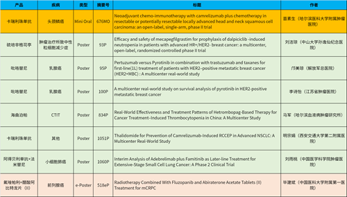 此外,BJL平台医药自主研发的血小板生成素受体激动剂(TPO-RA)海曲泊帕在肿瘤治疗所致血小板减少领域、新一代长效G-CSF产品硫培非格司亭在肿瘤治疗所致中性粒细胞减少症领域各入选1项壁报展示。